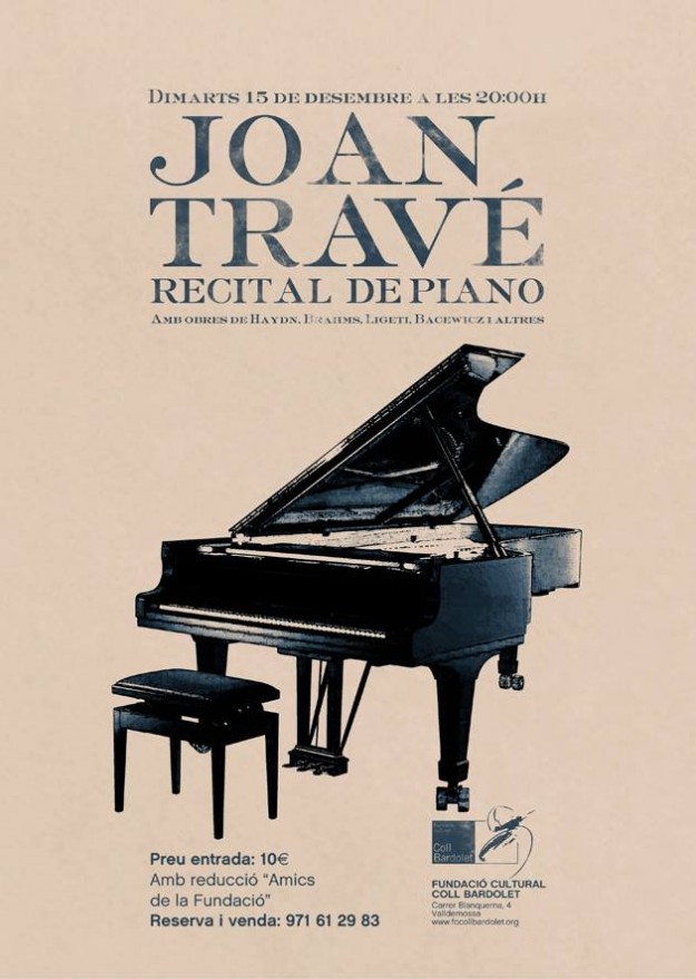 Concert de Joan Travé al piano amb obres de Haydn, Brahms, Ligeti, Bacewicz i d’altres.